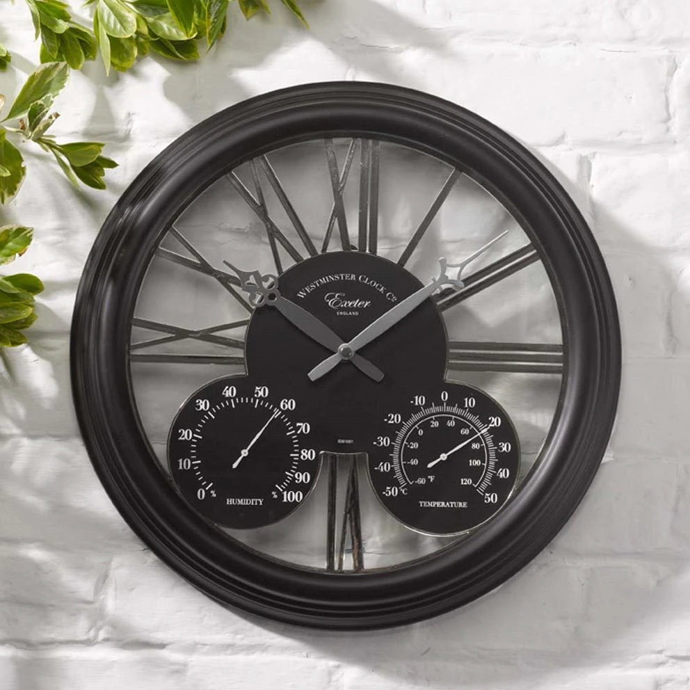 Exeter Wanduhr U. Thermometer, Schwarz, 38,5 Cm, Vielseitig, Robust