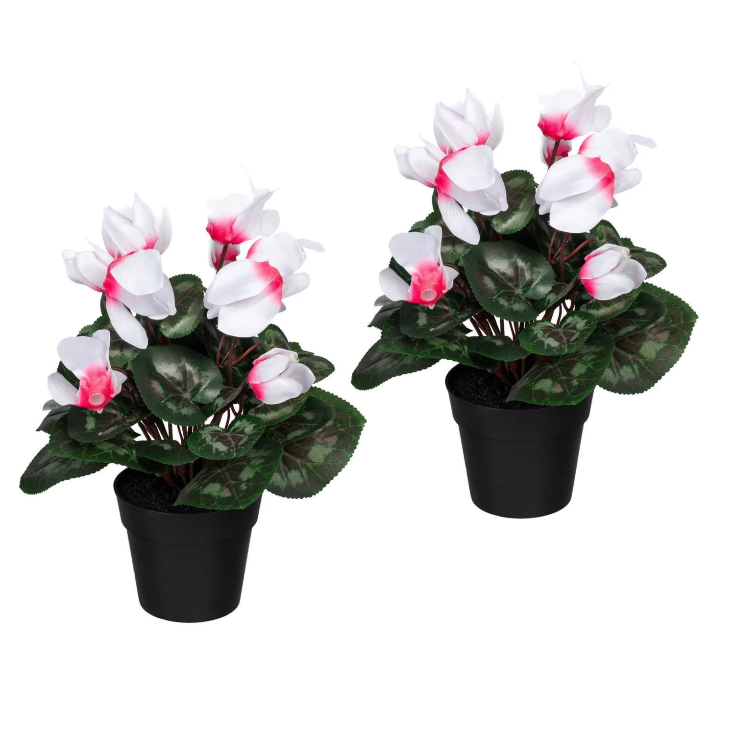 Künstliches Alpenveilchen, Weiß-pink, Ca. 30 Cm, Kunststofftopf 10 X 8,5 Cm