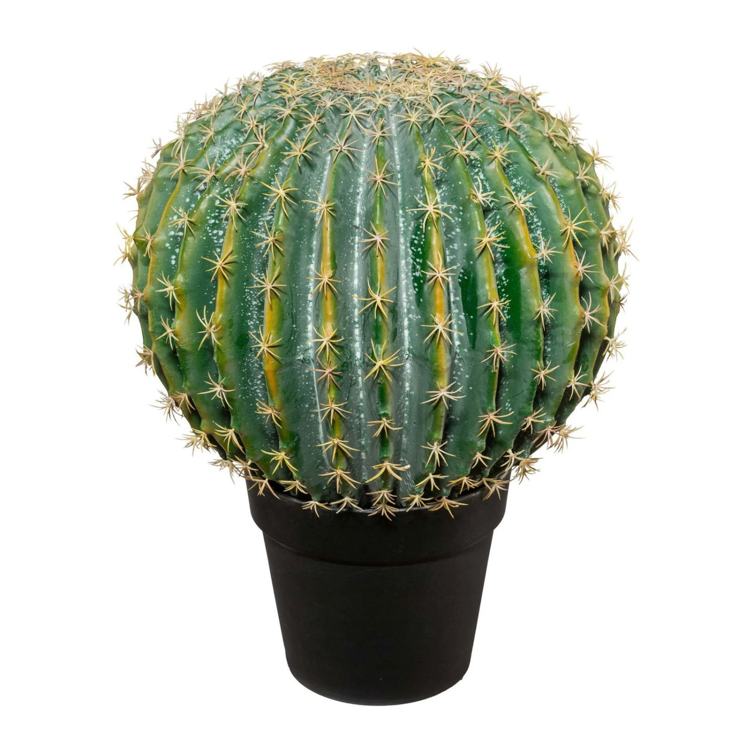 Ein Kugelkaktus bringt das Urlaubsfeeling direkt zu Ihnen nach Hause. Um sich dabei nicht noch mehr Arbeit aufzuhalsen, sind diese Kakteen künstlich. Sie bedürfen keinerlei Pflege, können an jedem Ort in Ihrem Haus sowie im Garten aufgestellt werden und sehen noch dazu super aus. Viele kleine Details sorgen dafür, dass dieser Kugelkaktus echt zu sein scheint. Mit kräftigen Farben und einer naturgetreuen Maserung ist die Illusion nahezu perfekt. Stellen Sie ihn direkt nach dem Kauf auf, denn er wird inklusive einem Kunststofftopf geliefert. Er bietet ausreichend Halt für einen stabilen Stand der Kunstpflanze. Dabei ist es vollkommen irrelevant, ob Sie ihn an einen heißen oder kalten, schattigen oder sonnigen Ort stellen, denn dieser künstliche Kugelkaktus macht überall eine gute Figur.