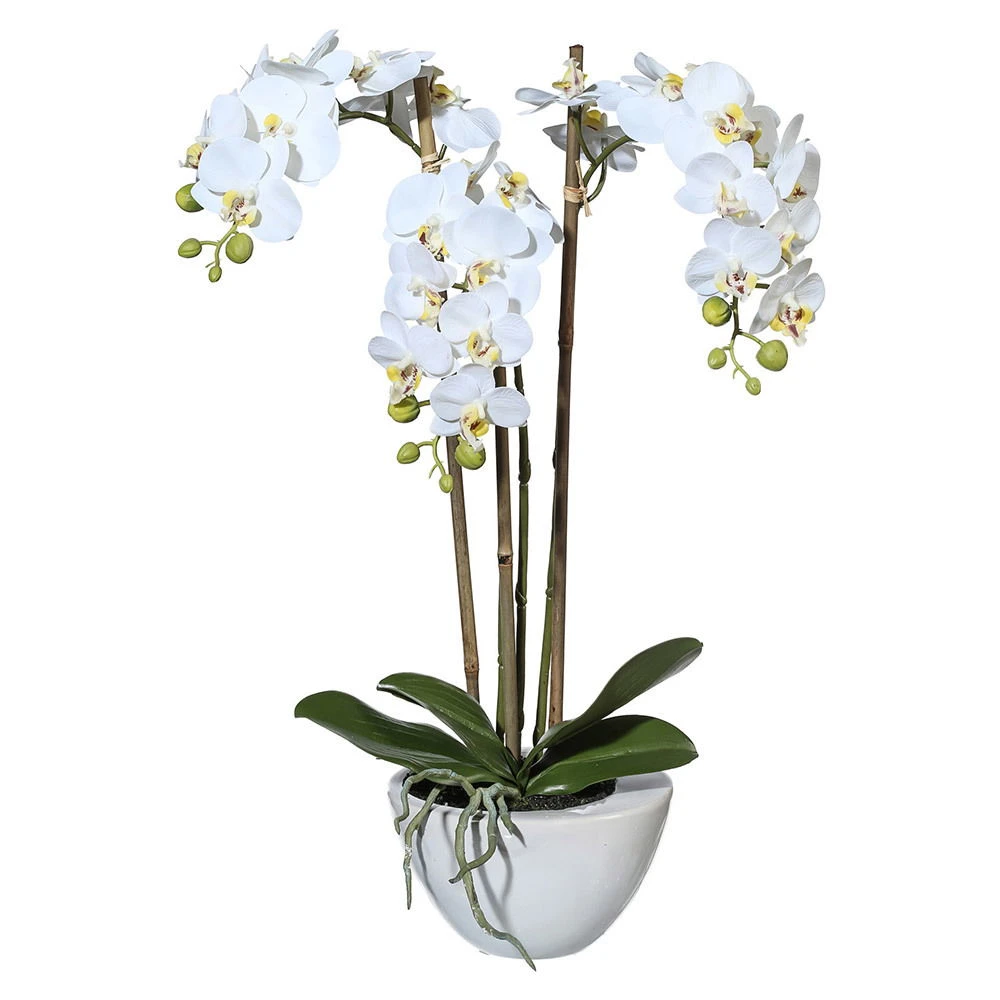 Die Kunstblume ist in der Keramikschale fest verankert und sieht nicht nur traumhaft aus, sondern überzeugt auch mit einfacher Pflege und einer nicht endenden Blütenfülle.