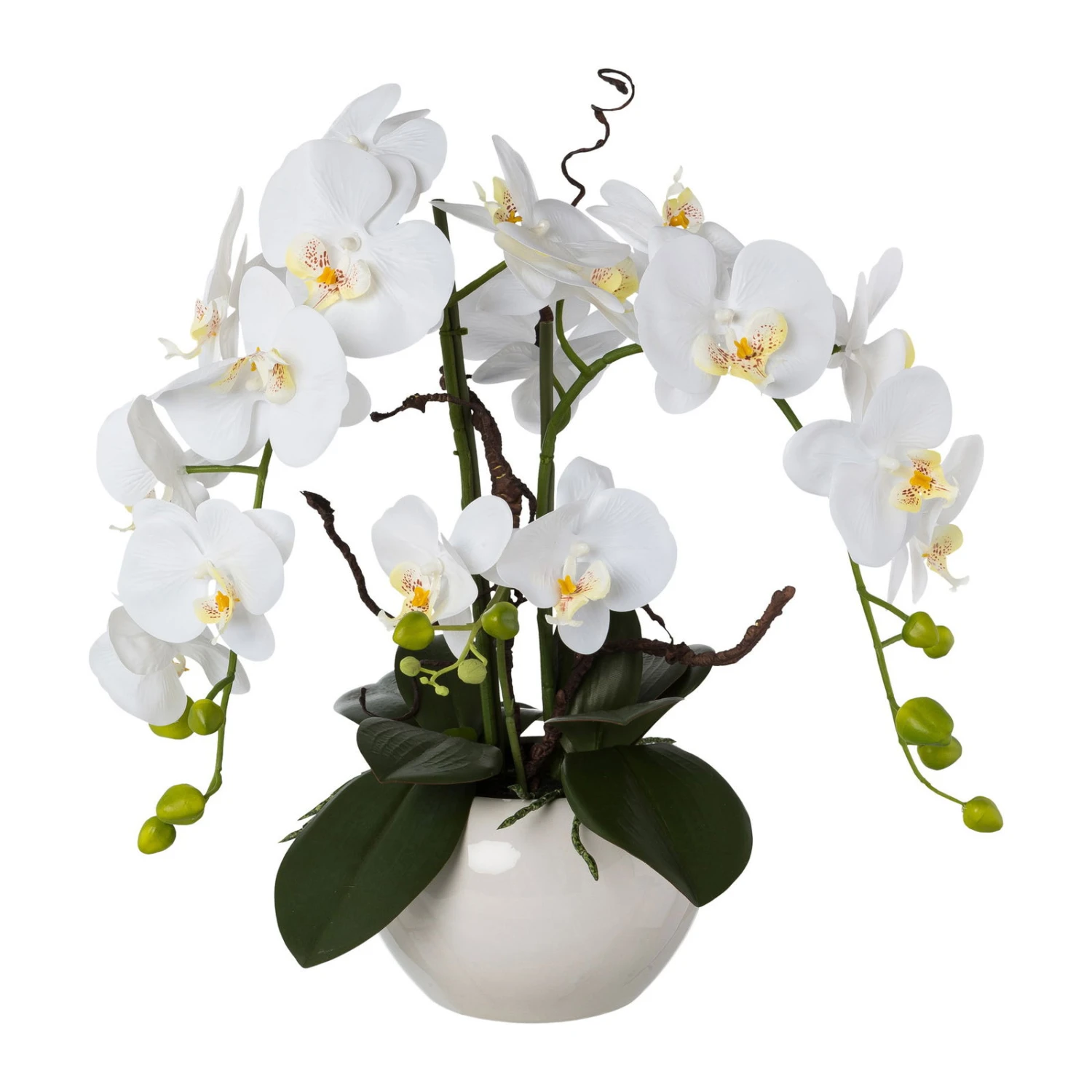 Kunstpflanze Phalaenopsis ‚Real Touch‘, Weiß, Topf-Ø 18 Cm, Höhe Ca. 55 Cm