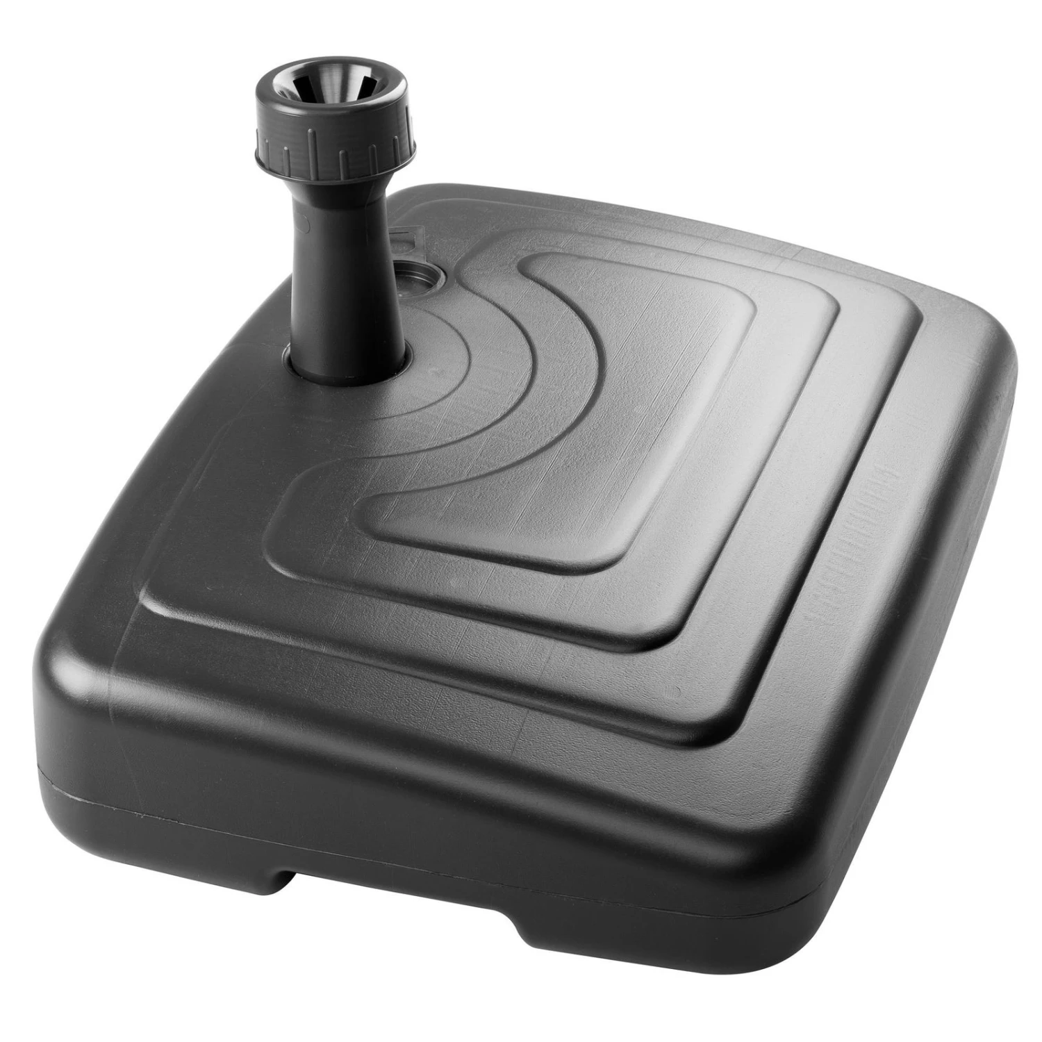 Dieser robuste Kunststoff-Balkonschirmständer von Schneider ist in erster Linie für kleinere Sonnenschirme bis zu 200 Zentimetern und für Schirmstöcke mit einem Durchmesser zwischen 25 und 32 Millimetern gedacht. Der Schirmständer fasst rund 25 Liter und ist entweder mit Wasser oder mit Sand zu befüllen.