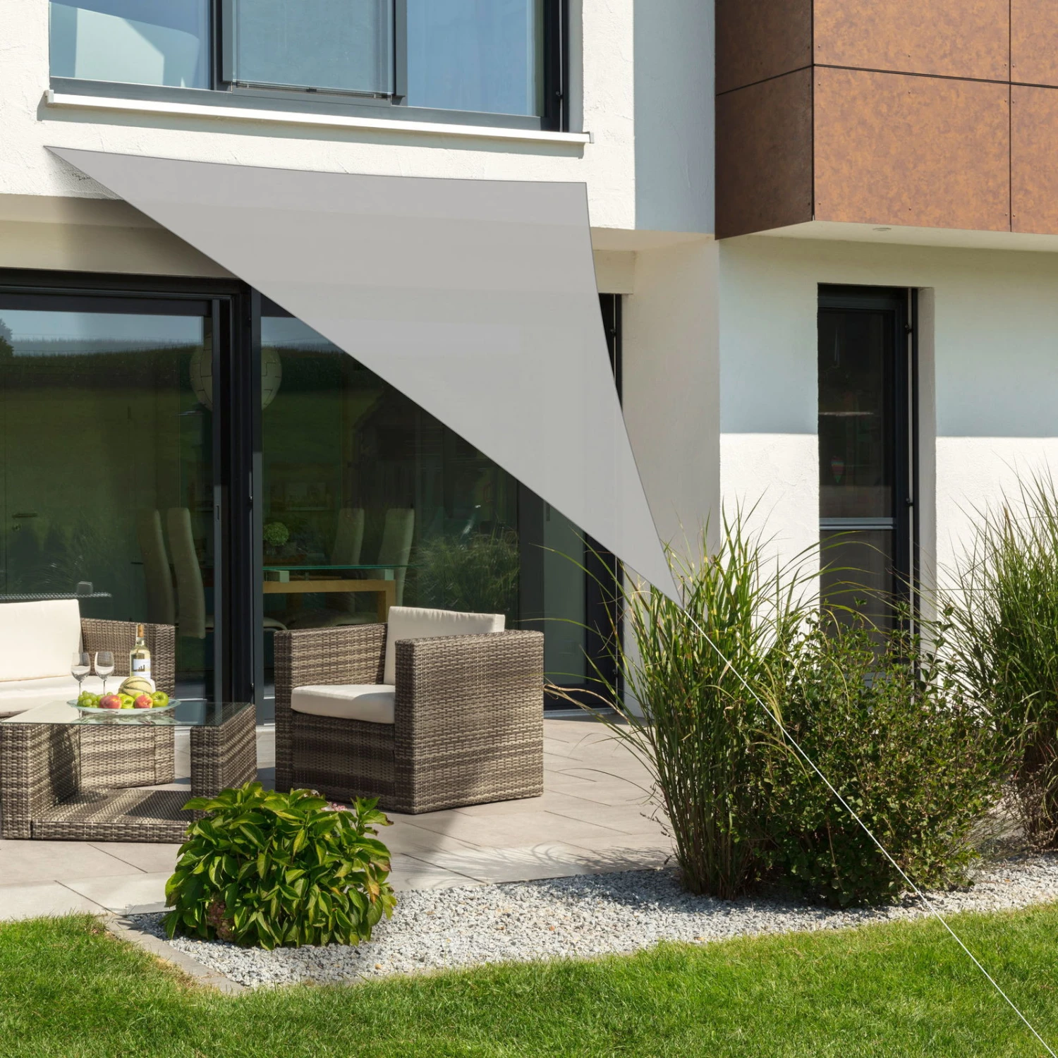 Das dreieckige Sonnensegel Lanzarote von Schneider Schirme lässt auf Ihrer Terrasse oder Ihrem Balkon eine schattige Oase entstehen. Sie erhalten dieses Sonnensegel inklusive passender Gummispanner, einem Befestigungsseils und Edelstahlösen. Dank eines strapazierfähigen Polyestergewebes hält das Sonnensegel rund 50 Prozent der schädlichen UV-Strahlung ab und ist außerdem wasserabweisend.