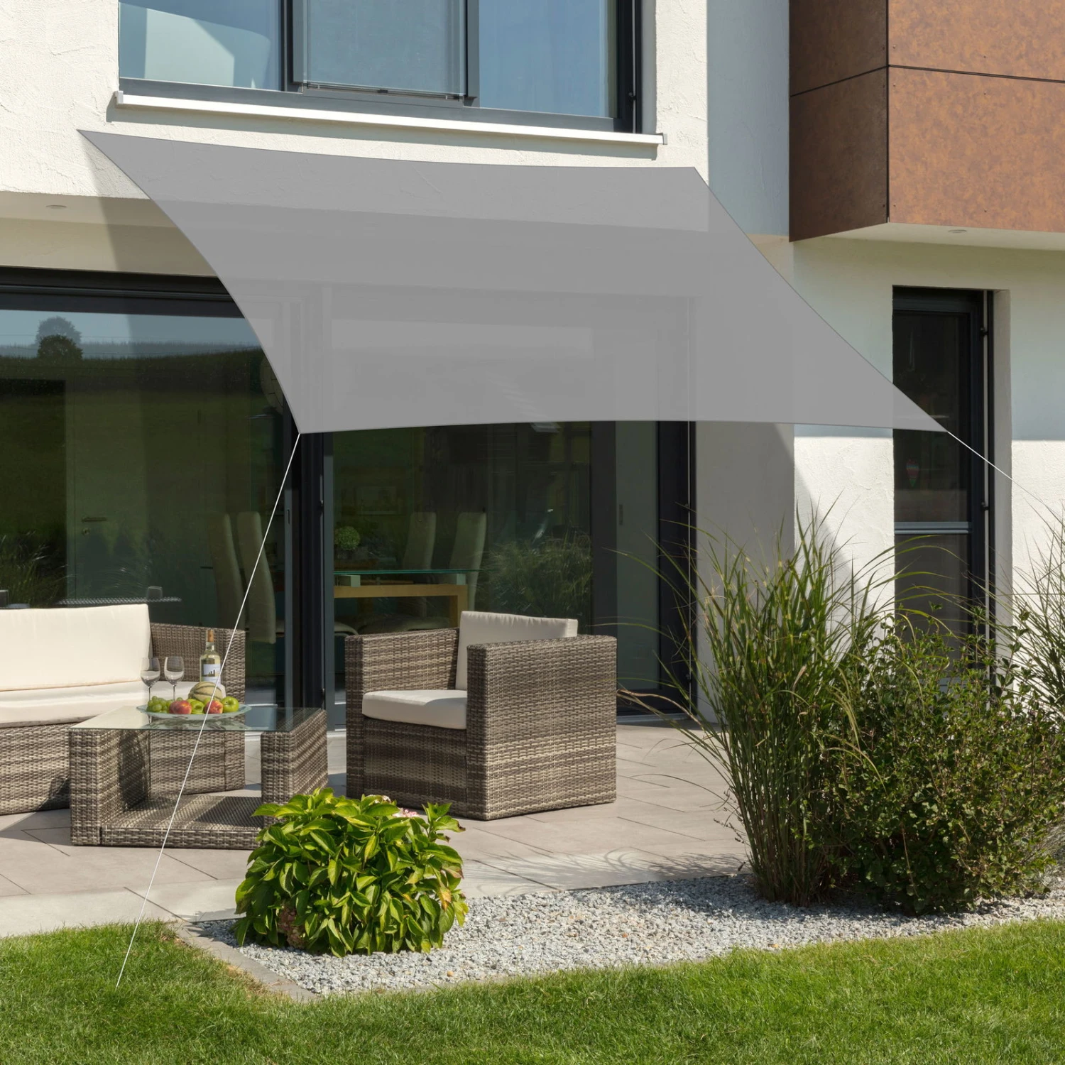 Das Sonnensegel ‚Teneriffa‘ von Schneider Schirme lässt auf Ihrer Terrasse oder Ihrem Balkon eine wohltuende schattige Oase entstehen. Das Sonnensegel besteht aus wetterfestem, reißfestem HDPE-Gewebe und ist mit Befestigungsringen aus Edelstahl sowie einem verstärkten Randsaum ausgestattet. Außerdem erhalten Sie im Lieferumfang ein 10 Meter langes Befestigungsseil.